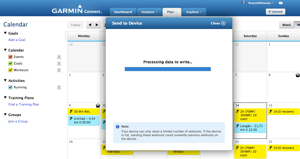 Depois de um tempo parou de funcionar o envio de exercícios para o meu Garmin novamente.