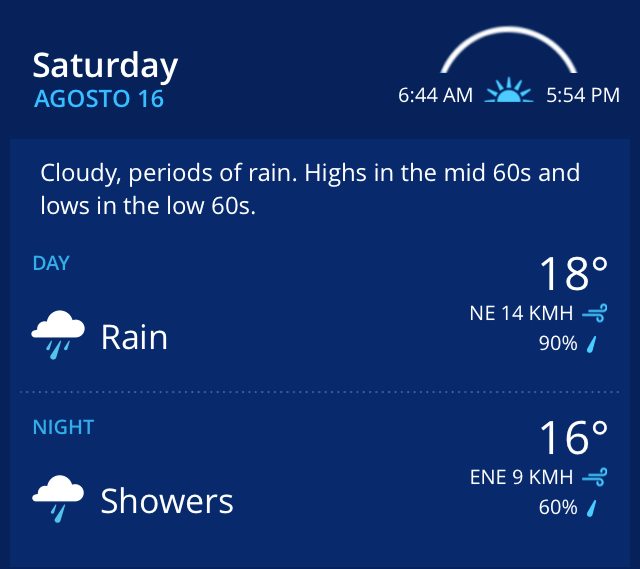 Ontem à noite olhei a previsão para Bombinhas no sábado, data da Indomit: 90% de chance de chuva!