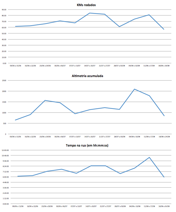 Não dá para dizer que esta foi uma semana intensa: rodei pouco menos de 6 horas, não cheguei sequer a 60km e nem atingi os mil metros de ganho altimétrico acumulado.