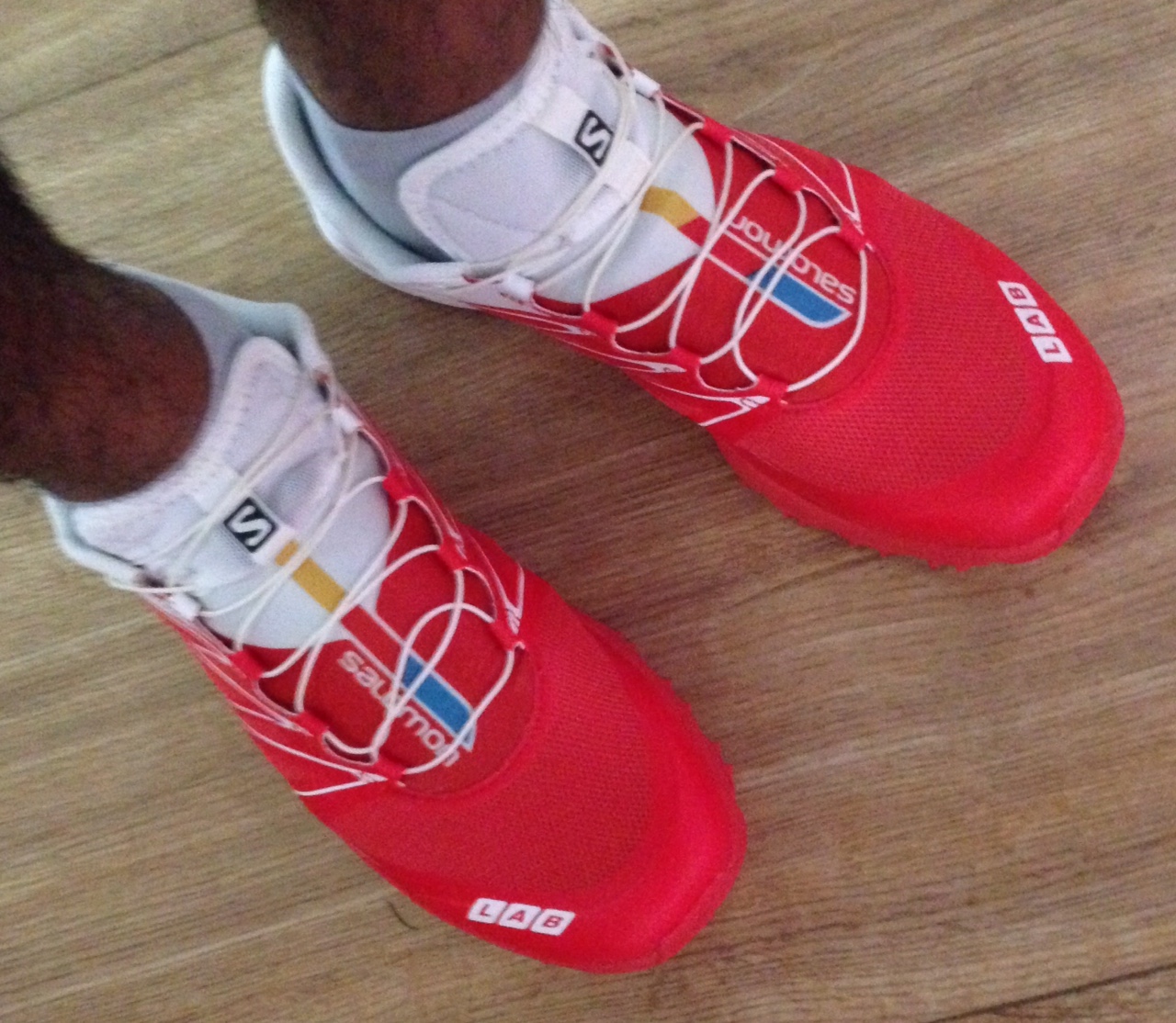 Gosto de correr com tênis minimalistas – o mais “barefoot style” possível, com drop zero e peso ínfimo. Nas ruas, normalmente uso o Merrell TrailGloves ou o Vibram Fivefingers, excelentes para ajudar na biomecânica. O Salomon S-Lab Sense 3 Ultra não é exatamente “barefoot style” – tem um drop de 4mm que me preocupou um pouco no começo.