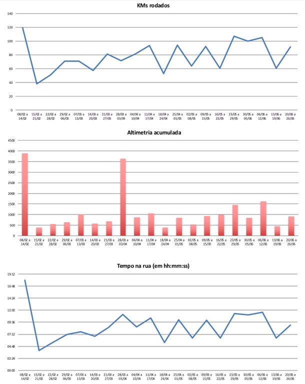 Contrapartida: meu pace foi muito, mas muito melhor, ficando na média abaixo dos 6/km mesmo considerando os 91K rodados com tantos semáforos e cruzamentos nos caminhos. São os pros de se mudar a rotina algumas vezes: independentemente da manutenção ou não do volume, o corpo acaba se desencaixando de seus próprios hábitos e nos entregando surpresas.