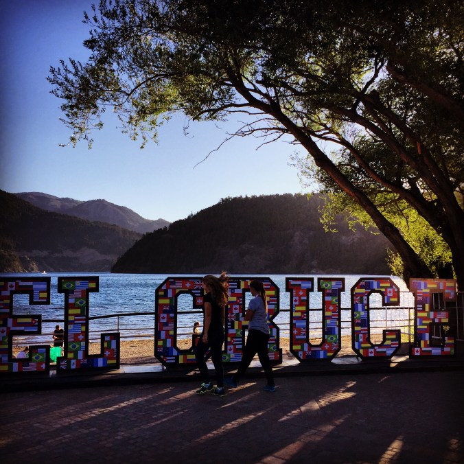 Aos poucos, aliás, a cidade foi aparecendo no canto do lago, que já dominava o lado direito da paisagem. Pequenas casas começaram a surgir, quebrando a sensação de isolamento na qual vivemos por 3 dias; grupos de locais fazendo trekking cruzavam conosco; a música da linha de chegada foi ampliando o volume; e os últimos incentivos de parabéns começaram a ser gritados pelo staff do Cruce.