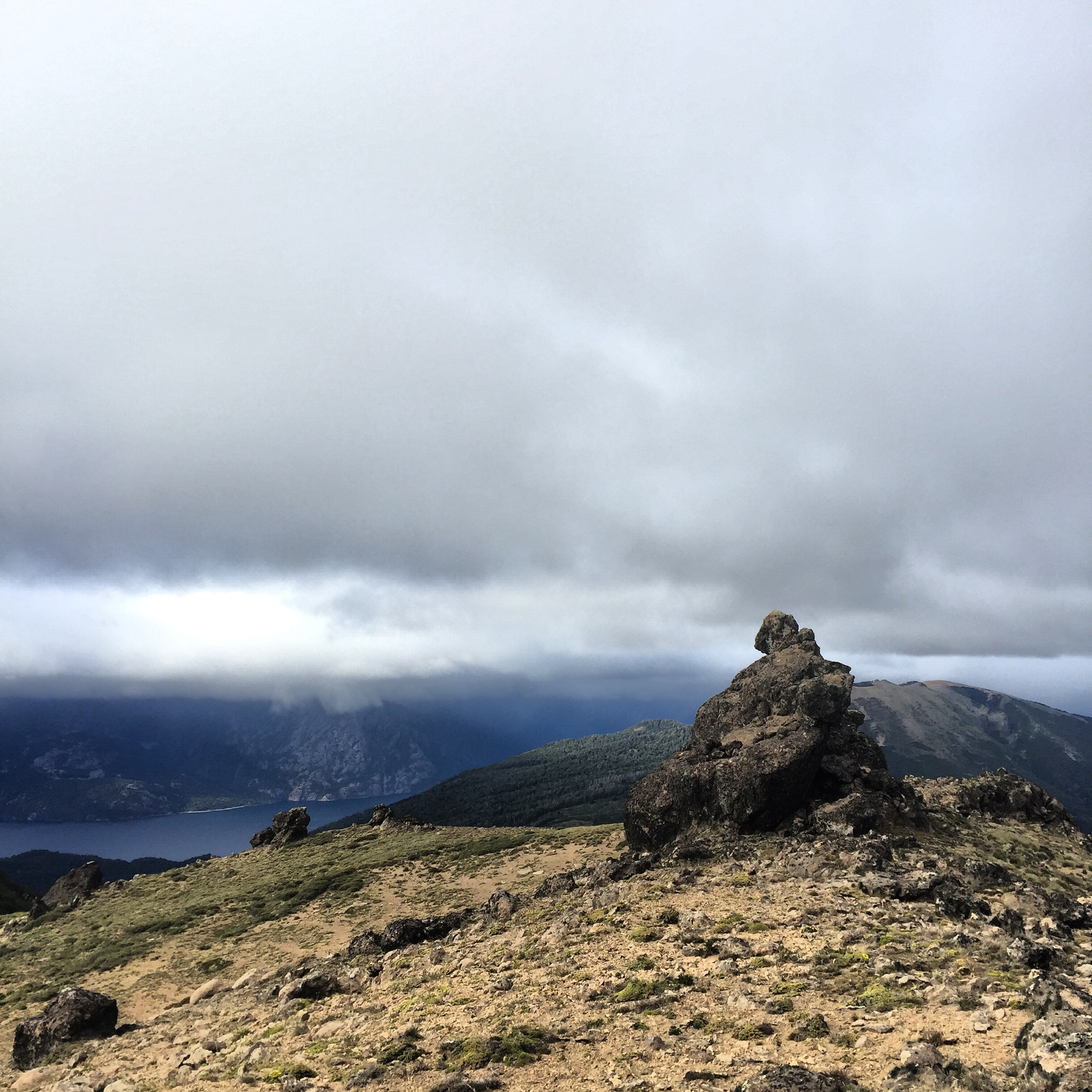 Pausa para foto – rápida, já que o frio mal deixava os dedos obedecerem – e era hora de descer. Não muito: um segundo cume se aproximava, menor que Milito mas, ainda assim, incrível. Diferente, aliás: todos os cumes que subimos foram diferentes em tudo, dos arredores à própria vegetação. Esse segundo, por exemplo, era praticamente formado de pedregulhos soltos e esparramados por uma vegetação queimada, quase inexistente. Mais vento, mais frio.