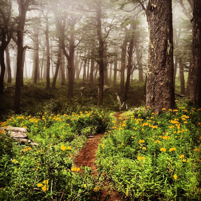 Cortamos uma floresta densa, sob uma neblina espessa e praticamente rodeados por flores amarelas em um cenário que mais parecia um conto de fadas. As trilhas, suaves, permitiam que se voasse montanha abaixo – ao menos por algum tempo.