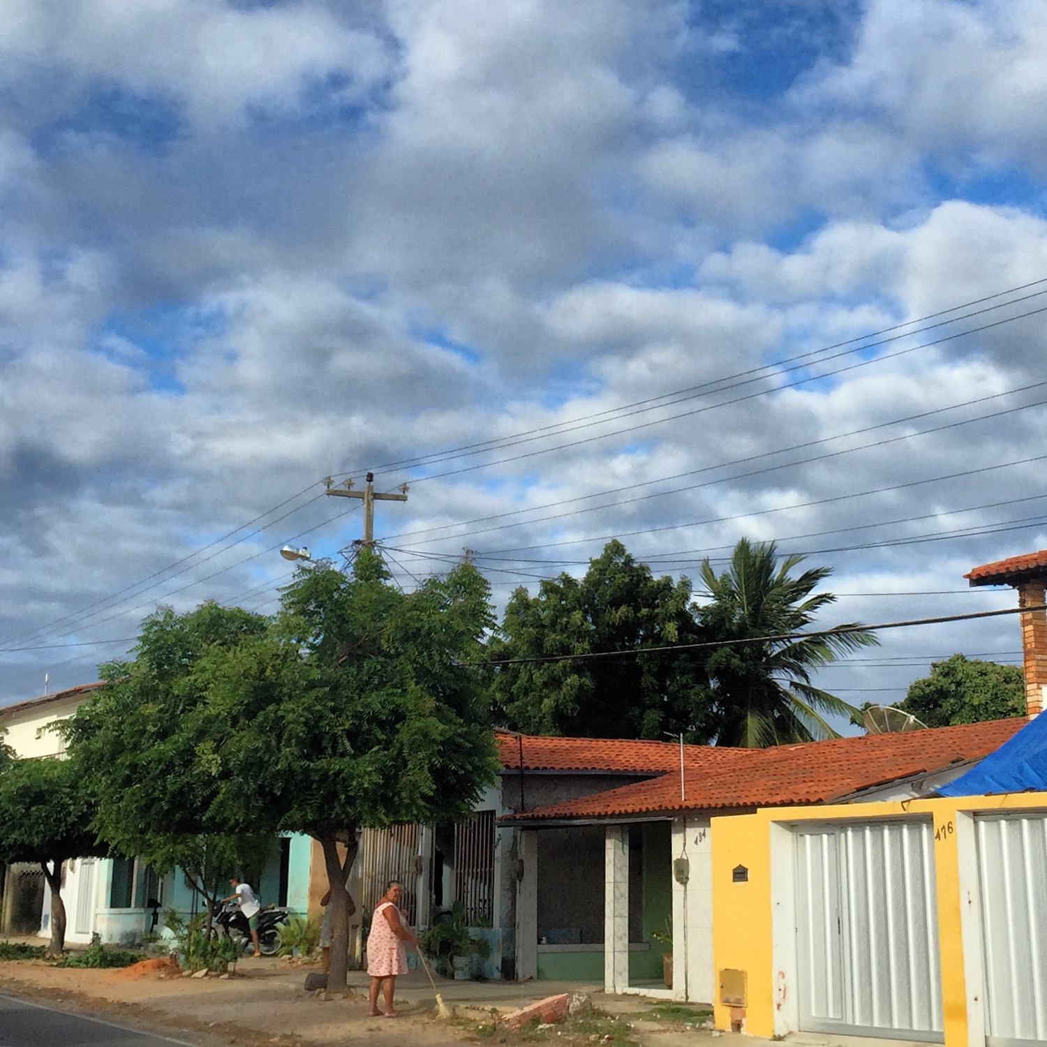 Uma velha sertaneja varria sua calçada, tirando a mesma areia que, minutos depois, certamente voltaria carregada pelo vento. Bares já começavam a abrir, juntamente com mercadinhos e portas que entregavam à vila crianças em busca de diversão.