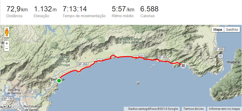 A parte mais tensa é no final, principalmente na subida da serra de Maresias. Será uma subida de 300 a 400 metros em algo como 2 ou 3 km depois de ter passado por bastante areia fofa. O fato disso ter ficado para o final é até bom: não seria uma ultra de respeito sem alguma pitada de sadismo :-)