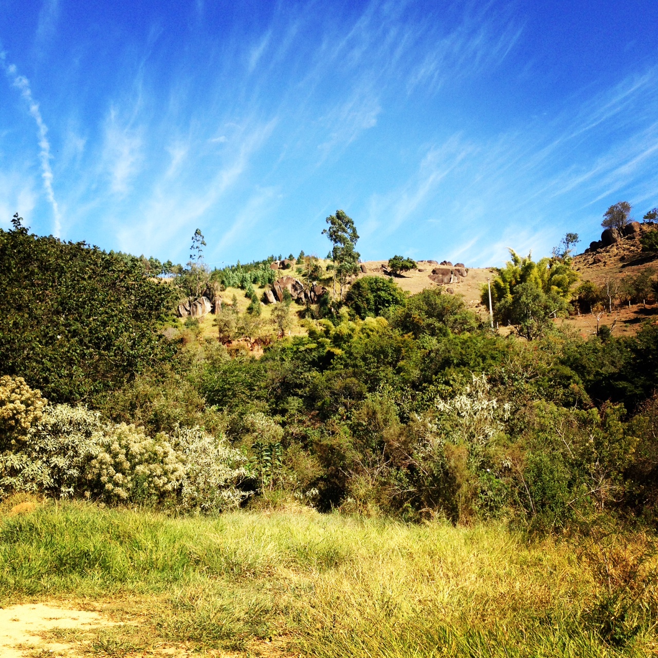 Me arrependo de não ter parado para tirar mais fotos: foi apenas uma, de uma montanha sob um céu azul cintilante, logo depois de um rio tão lindo que parecia não se encaixar em um lugar tão próximo da cidade grande.