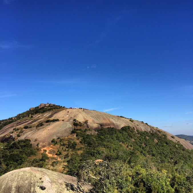 Segui a trilha e caminhei pelas pedras, respirando o céu azul e vendo a cidade esparramada lá em baixo.
