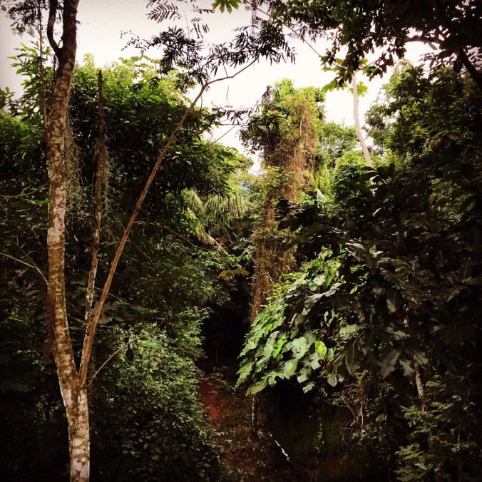 Em um determinado ponto, me deparei com uma plataforma feita para se observar pássaros. Subi pela escada, tirei uma foto e desci de volta: não era ali que queria chegar. Vasculhei a mata mais um pouco e achei a trilha certa, seguindo adiante.