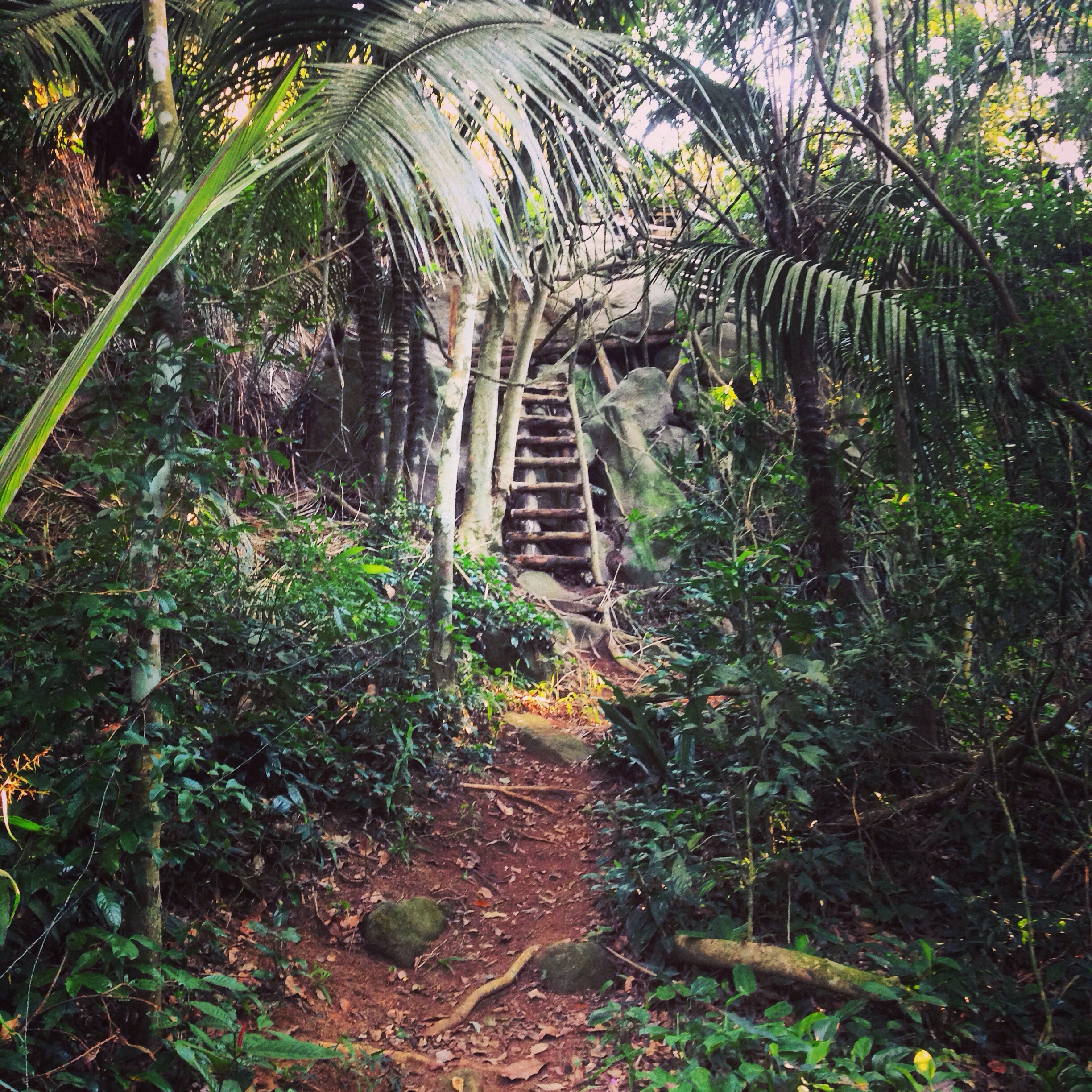 Nem demorei muito: logo em frente encontrei uma pedra grande com algun degraus podres levando ao cume.