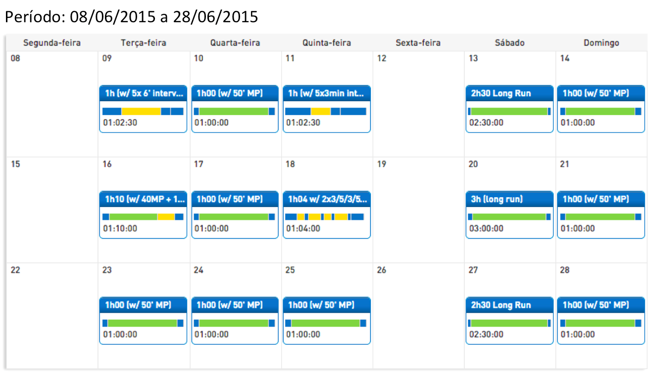Terças e quintas serão dias de tempo runs ou tiros, alternando-se. Isso será sagrado: trabalhar velocidade foi algo que gostei de fazer até aqui, até para dar uma variada, e que pretendo continuar.